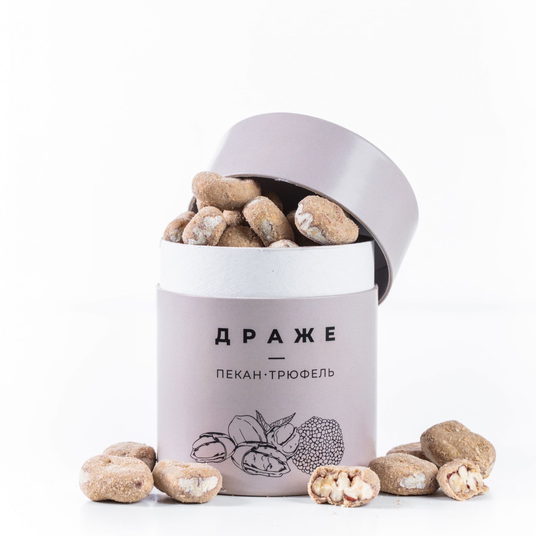 конфеты с выверенными начинками, тягучая нуга, драже с выразительной текстурой, плитка шоколада и аккуратный подарочный бокс.